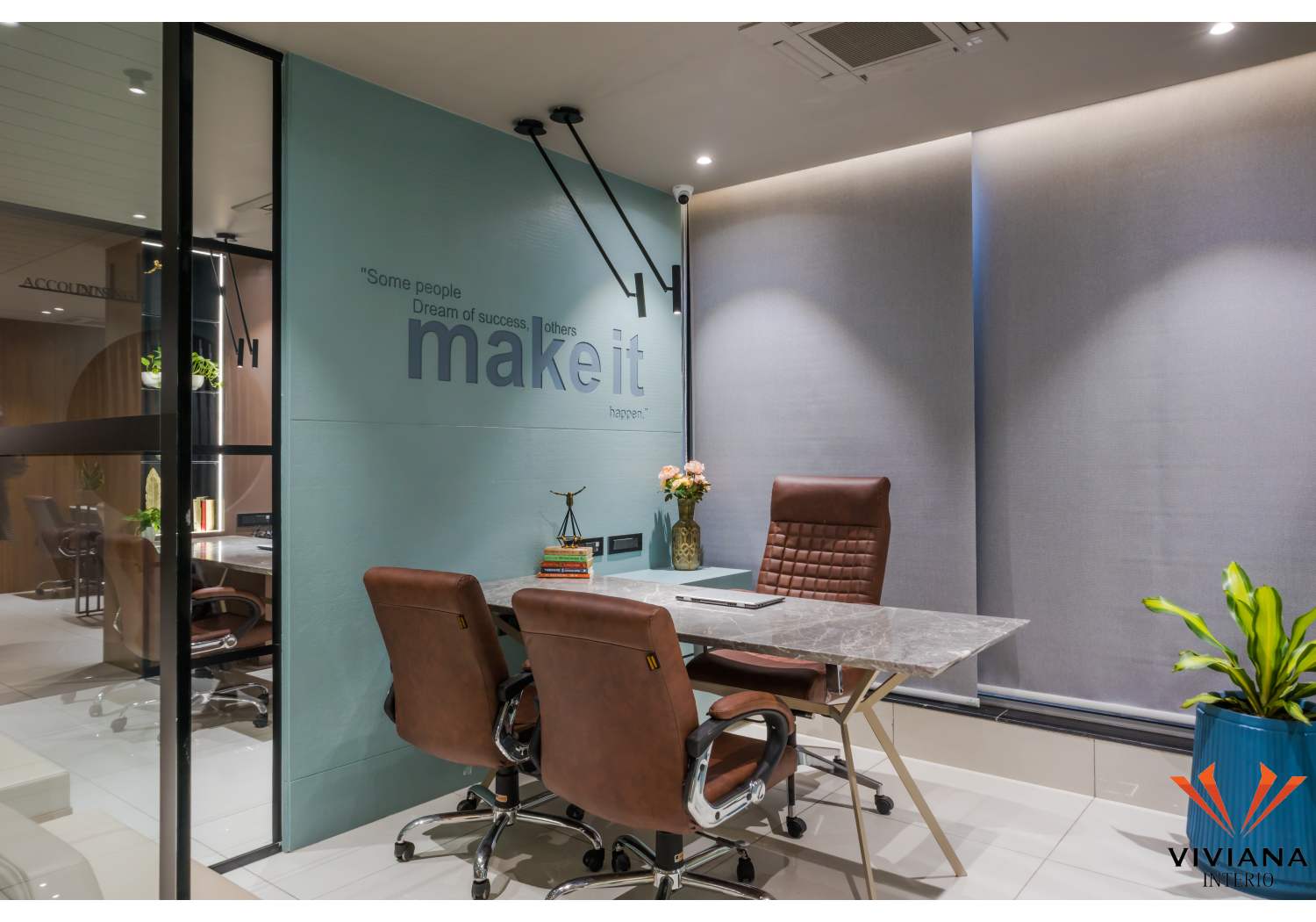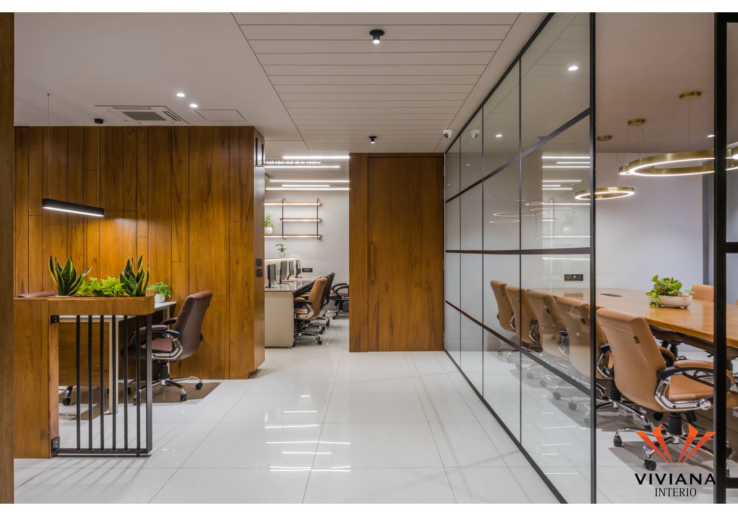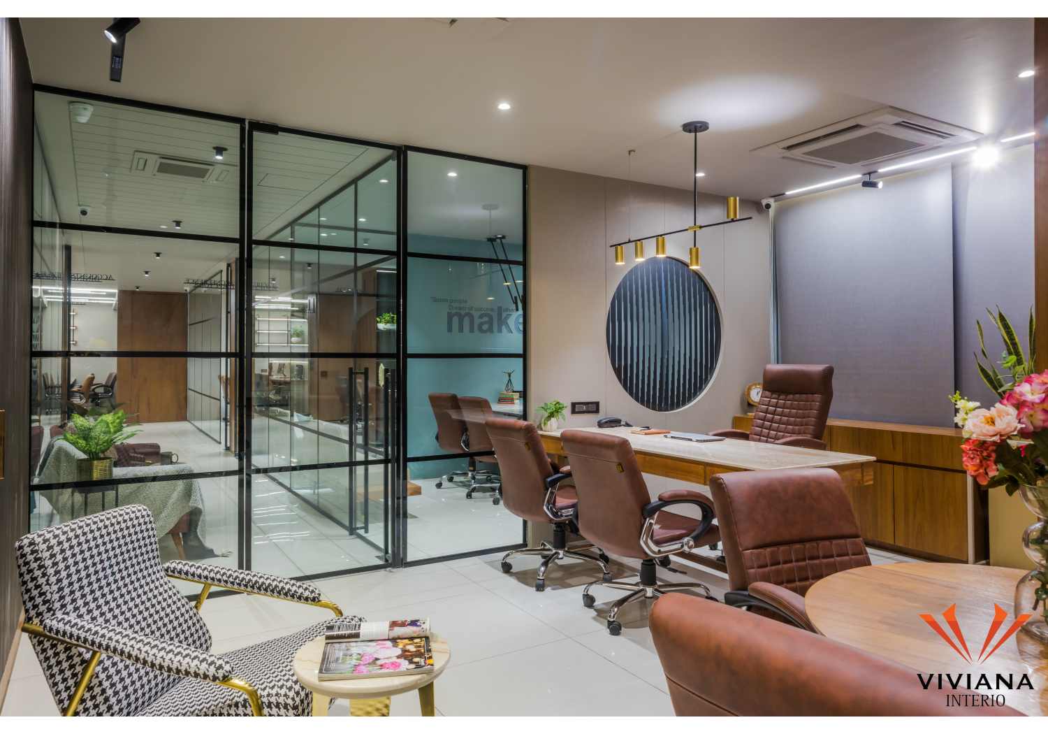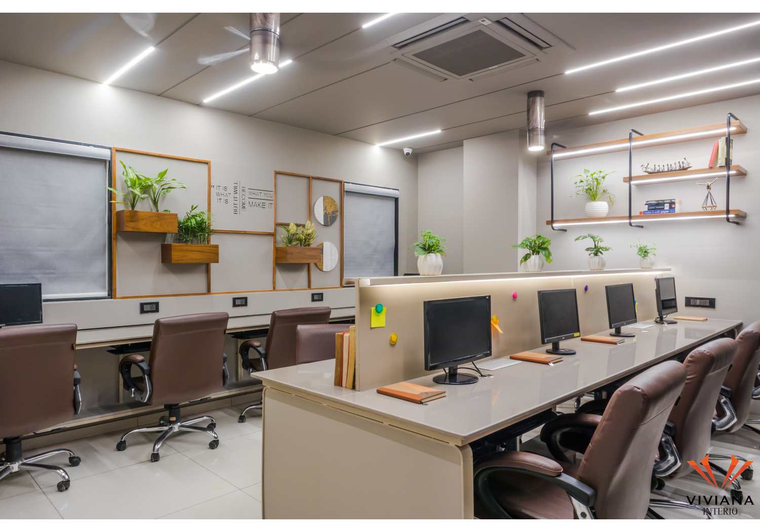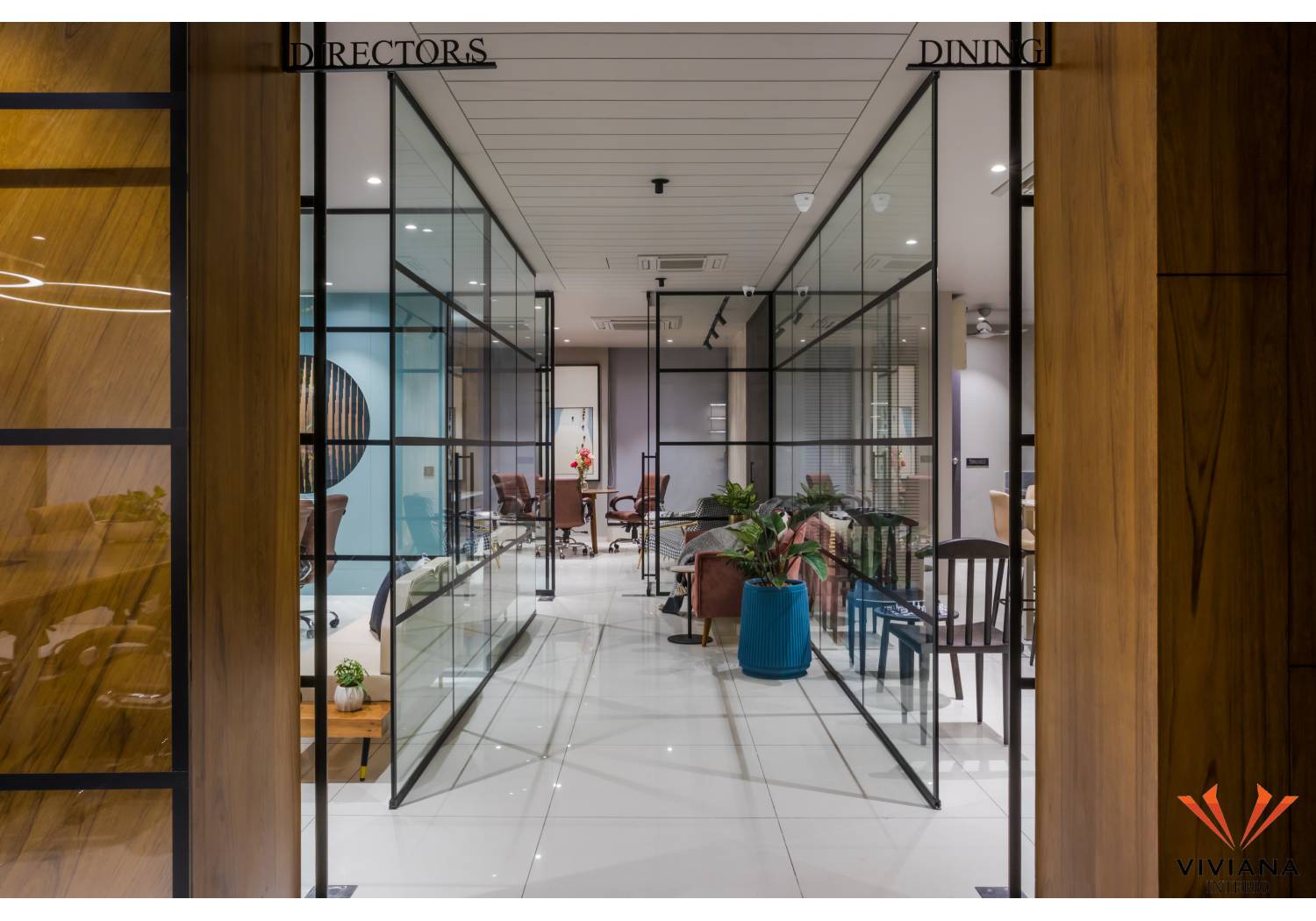 The office is a space where an organization and the employees work to support the objectives and goals of the organization. Recently Viviana Interio completed a well-designed a corporate office for an Indian MNC in the prime area of Manjalpur in Vadodara, Gujarat. This office is located on the 6th floor of the La Majesty complex. Ample natural light and ventilation are received directly through the front façade in this office. The front façade has an amazing sunset view with the city lights at night.